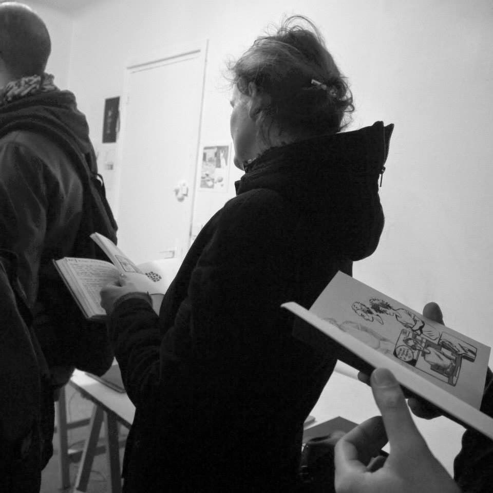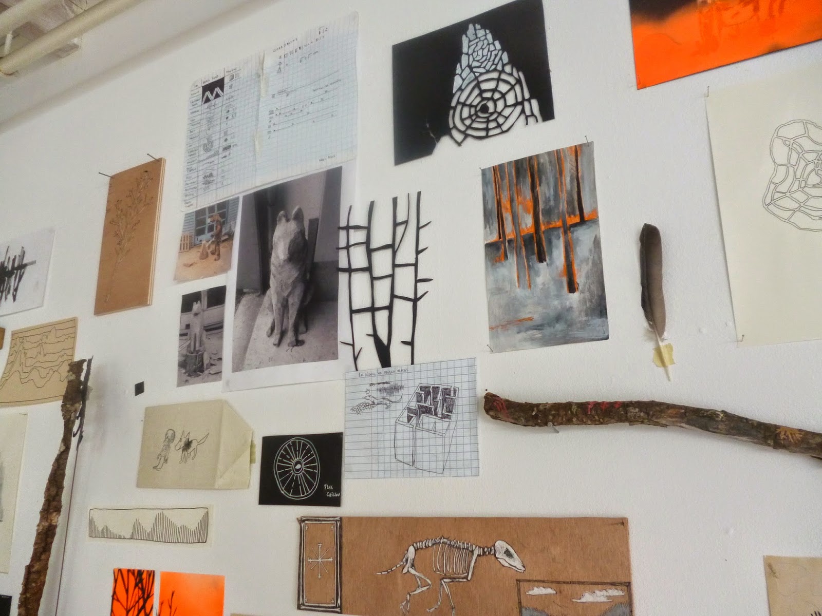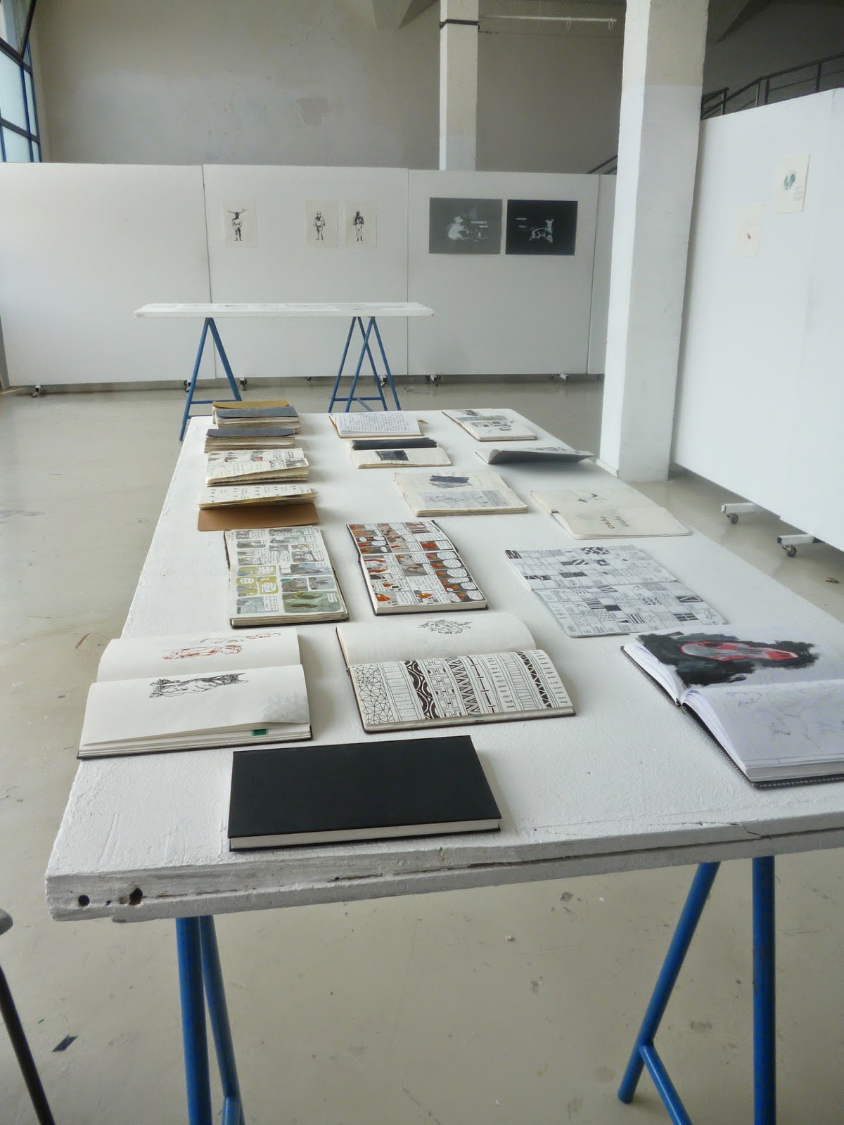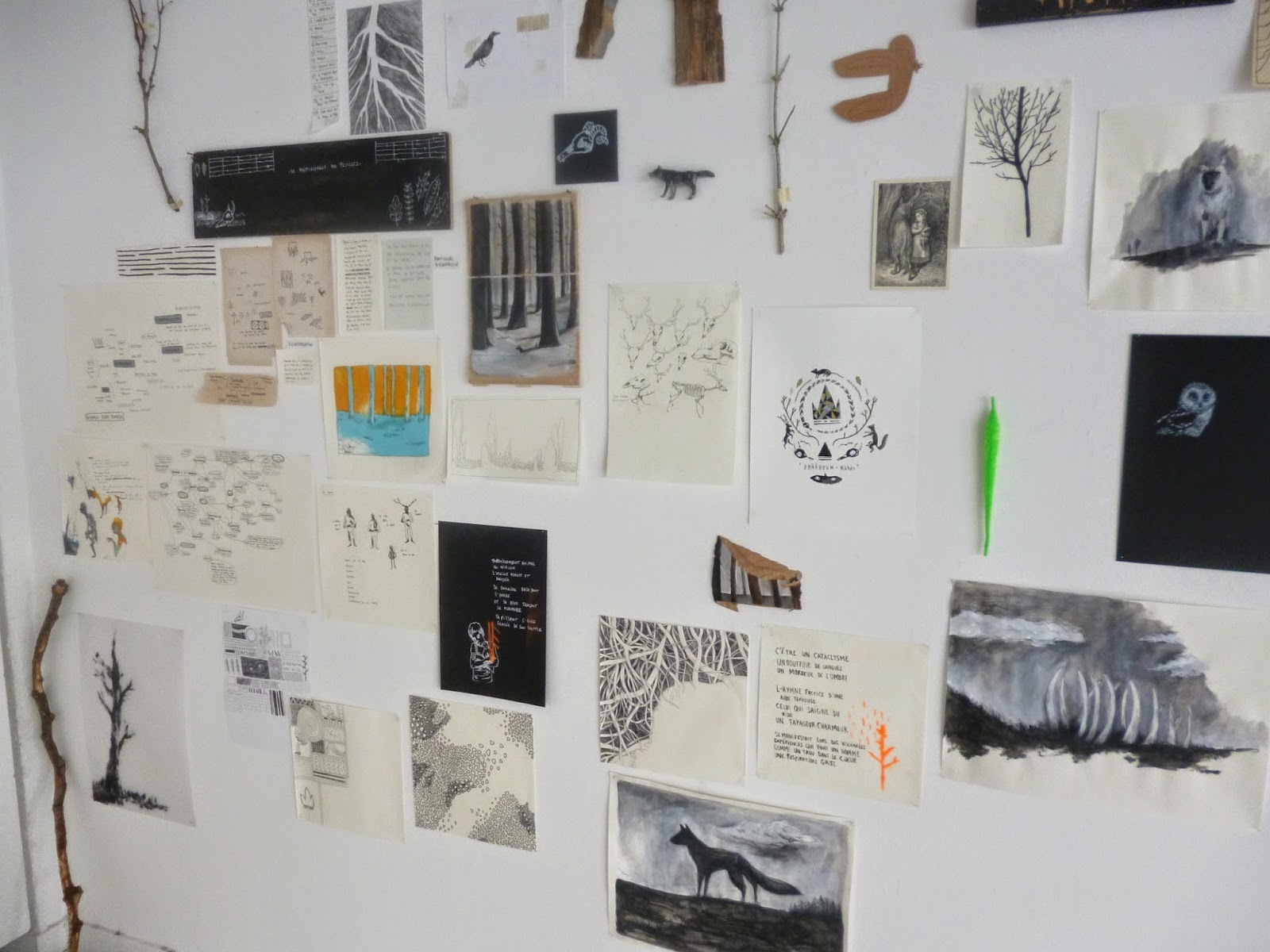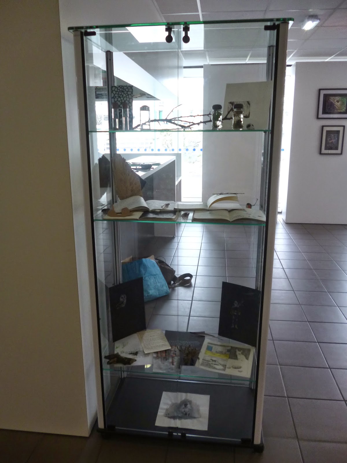 Et la vitrine pas très éloignée des cabinets de curiosité, avec un mélange d'éléments, de carnets, et de dessins...