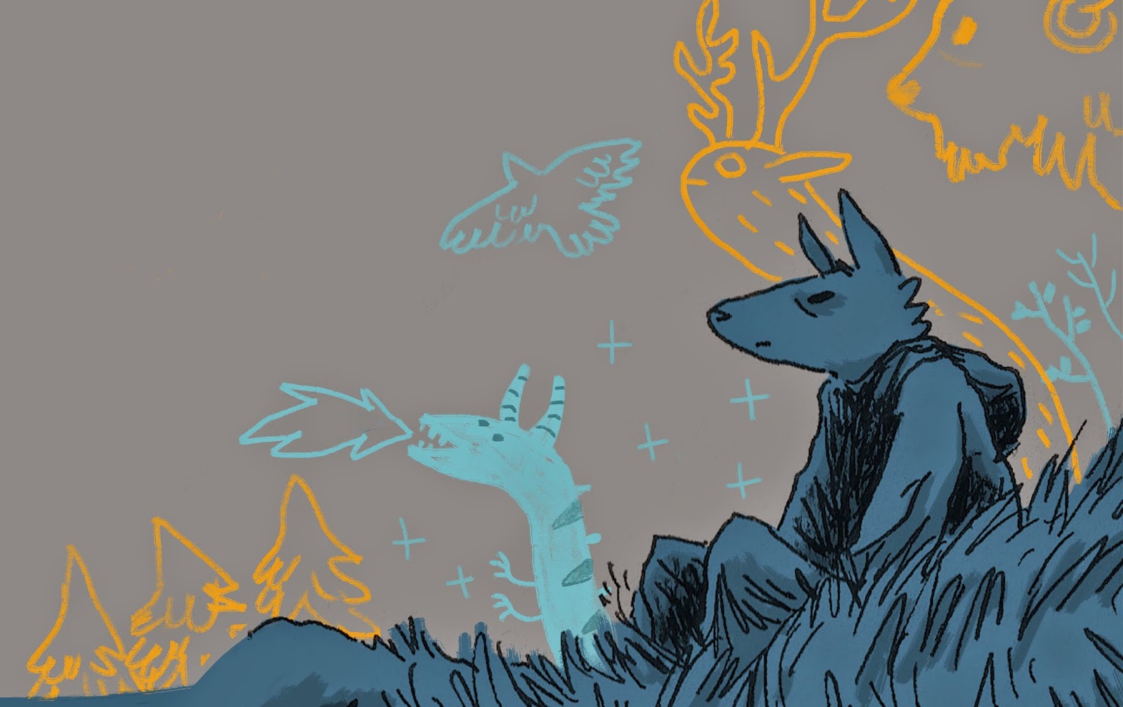 Sire Loup (Lam, 2014) qui garde l'entrée, faisant peur à la femme de ménage le matin, et attirant les gamins qui passent à la médiathèque d'à côté...